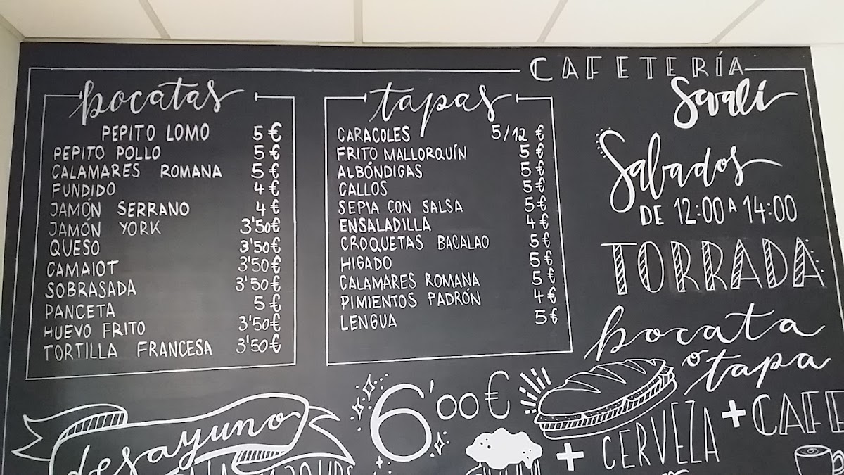 Cafeteria Savalí Menu